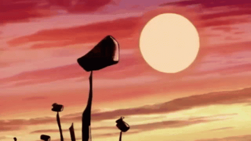 Контентын тайлбар: a sunset with a bucket in the foreground and a large sun in the background