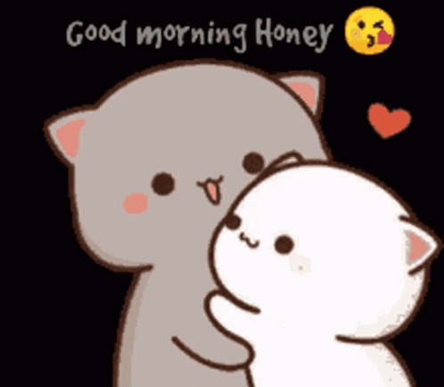 Контентын тайлбар: a cartoon cat is hugging another cat with the words good morning honey written on the bottom .