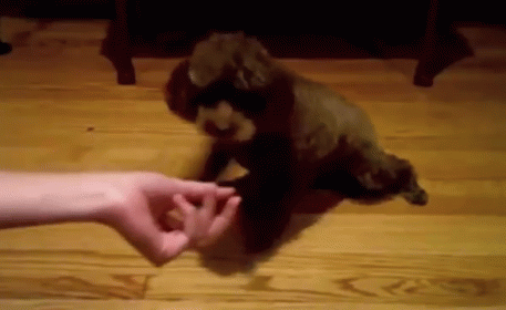 Контентын тайлбар: a person is playing with a cat on a wooden floor .