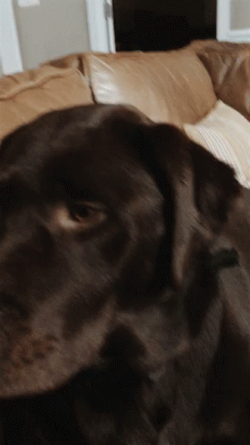 Контентын тайлбар: a brown dog is laying on a brown couch