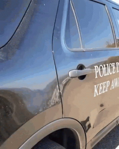 Контентын тайлбар: a black police car with keep away written on it