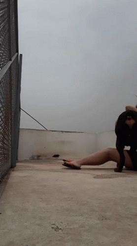 Контентын тайлбар: a person laying on a concrete floor with a fence in the background