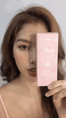 Контентын тайлбар: a woman is holding a box that says elixir on it