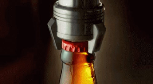 Контентын тайлбар: a bottle of beer is being opened by a rocket