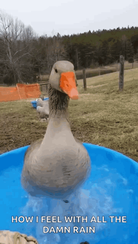 Контентын тайлбар: a duck is standing in a pool of water with the words how i feel with all the damn rain below it