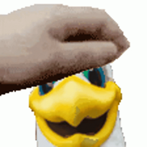 Контентын тайлбар: a person is putting their hand on top of a yellow duck .