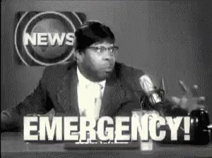 Контентын тайлбар: a man in a suit and tie is talking into a microphone in front of a news sign that says emergency .