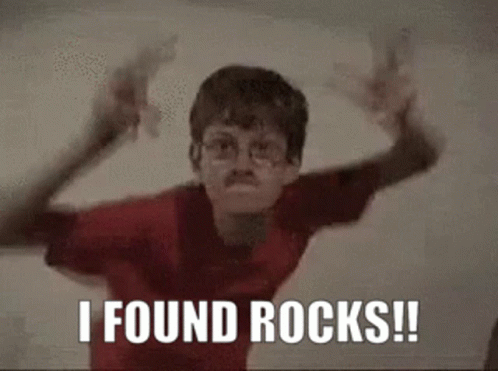 Контентын тайлбар: a boy in a red shirt is jumping in the air with the words i found rocks !