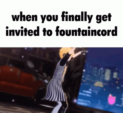 Контентын тайлбар: when you finally get invited to fountaincord is written on a white background