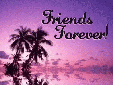 Контентын тайлбар: a purple sky with palm trees and the words friends forever