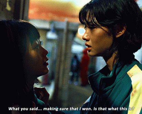 Контентын тайлбар: two women are looking at each other with one saying " what you said ... making sure that i won "