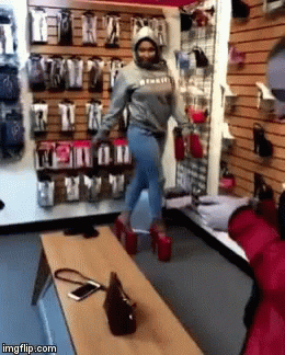 Контентын тайлбар: a woman wearing high heels is dancing in a store