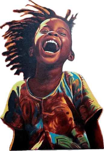 Контентын тайлбар: a child with dreadlocks is laughing with his mouth open