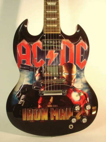 Контентын тайлбар: a guitar with ac dc iron man 2 on it