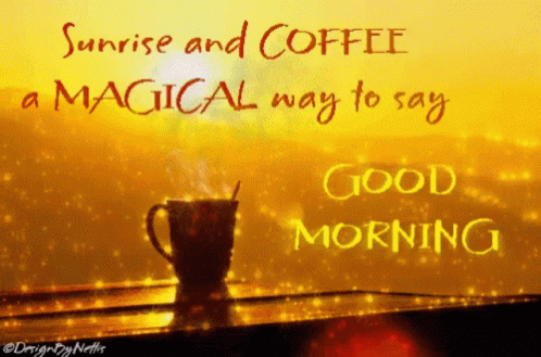 Контентын тайлбар: a sunrise and coffee a magical way to say good morning greeting card