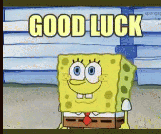 Контентын тайлбар: a cartoon of spongebob with the words " good luck " above him