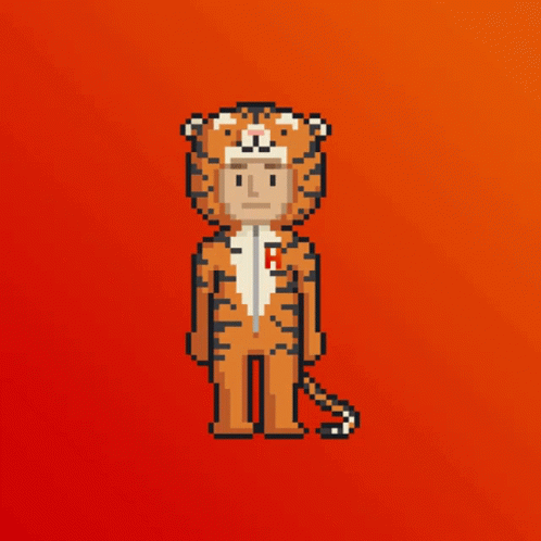 Контентын тайлбар: a pixel art of a man dressed in a tiger costume