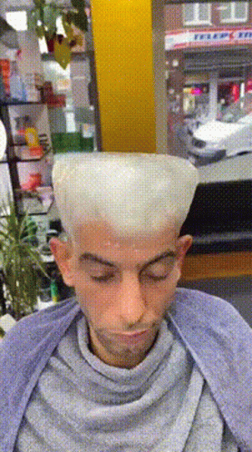 Контентын тайлбар: a man is getting his hair cut in front of a store that says freedom