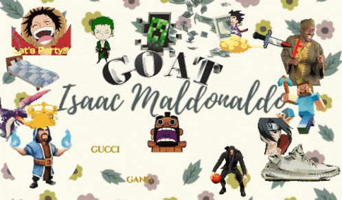 Контентын тайлбар: a poster that says goat isaac maldonald surrounded by cartoon characters