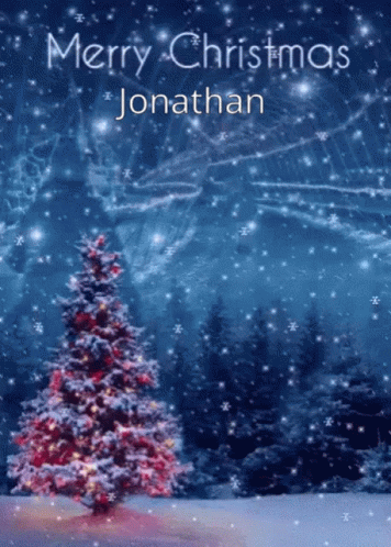Контентын тайлбар: a merry christmas card for jonathan with a christmas tree in the foreground