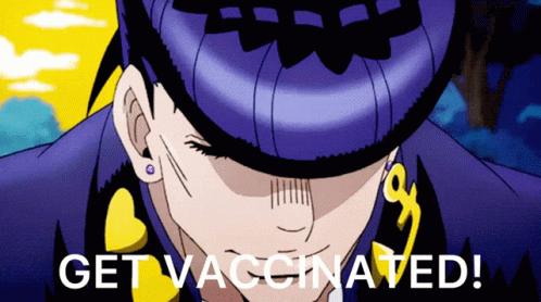 Контентын тайлбар: a cartoon character with the words get vaccinated