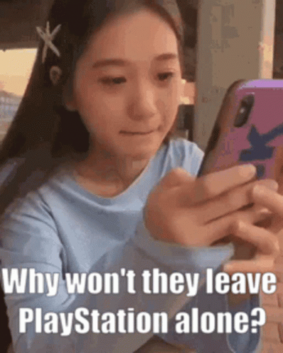 Контентын тайлбар: a girl is looking at her phone and says `` why won t they leave playstation alone ? ''