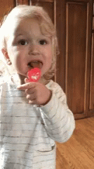 Контентын тайлбар: a little girl is holding a red heart shaped lollipop in her hand