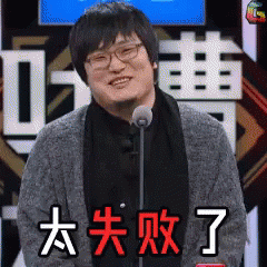 Контентын тайлбар: a man wearing glasses and a scarf is standing in front of a microphone with chinese writing on it .