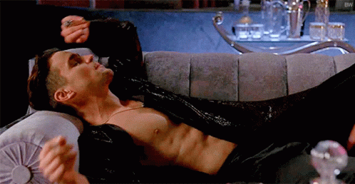Контентын тайлбар: a shirtless man is laying on a couch with his arms outstretched .
