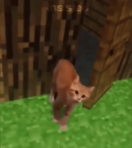 Контентын тайлбар: a cat is walking in a video game with the words `` cat > wtf a zombie '' below it .