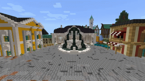 Контентын тайлбар: a minecraft scene with a fountain in the middle of it
