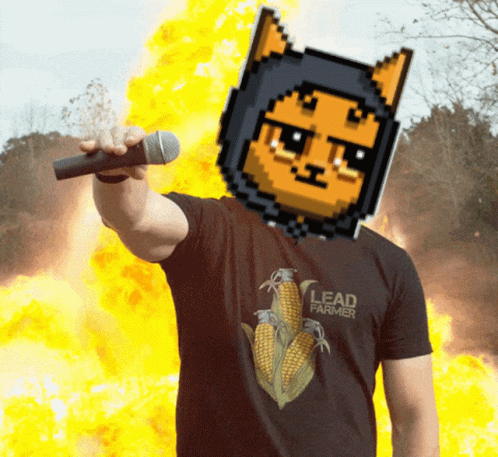 Контентын тайлбар: a man wearing a black shirt that says lead farmer