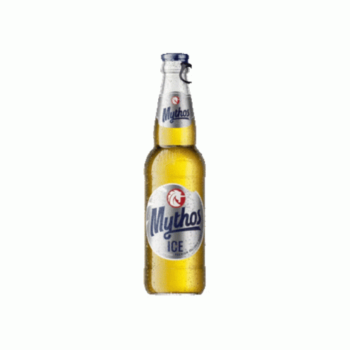 Контентын тайлбар: a bottle of mythos ice is sitting on a white surface