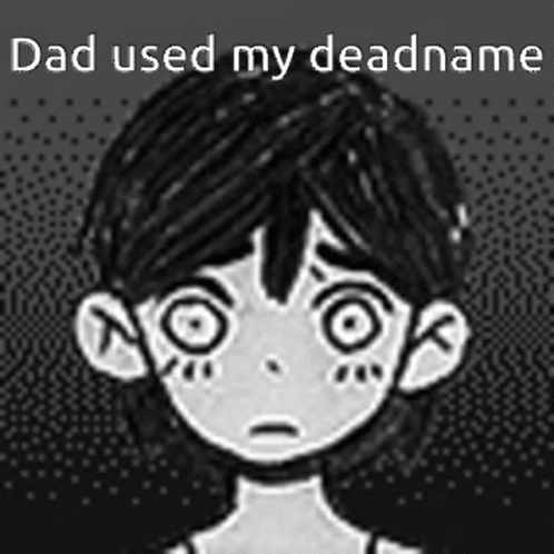 Контентын тайлбар: a black and white drawing of a boy with the words `` dad used my deadname '' written on it .