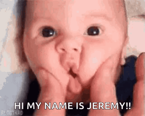 Контентын тайлбар: a baby is making a funny face and says hi my name is jeremy !