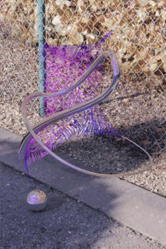 Контентын тайлбар: a chain link fence with a purple object behind it