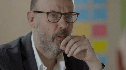 Контентын тайлбар: a man with glasses and a beard holds his hand to his mouth