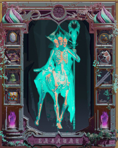 Контентын тайлбар: a pixel art of a skeleton holding a cane with the letters a and a on it