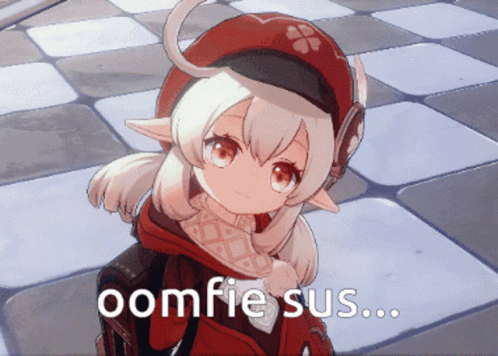 Контентын тайлбар: a picture of a girl with the words " oomfie sus " on the bottom