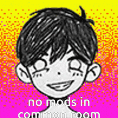 Контентын тайлбар: a black and white drawing of a boy 's face with the words `` no mods in common room '' below it .