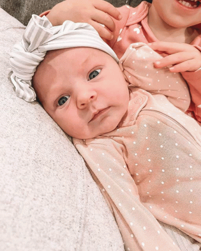 Контентын тайлбар: a baby wearing a headband and a pink polka dot outfit