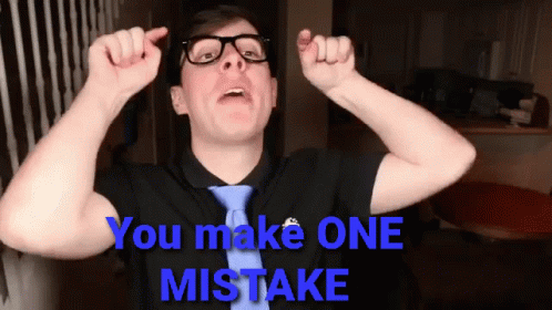 Контентын тайлбар: a man wearing glasses and a tie says you make one mistake in blue letters