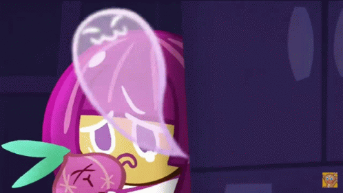 Контентын тайлбар: a cartoon character with purple hair blowing a bubblegum