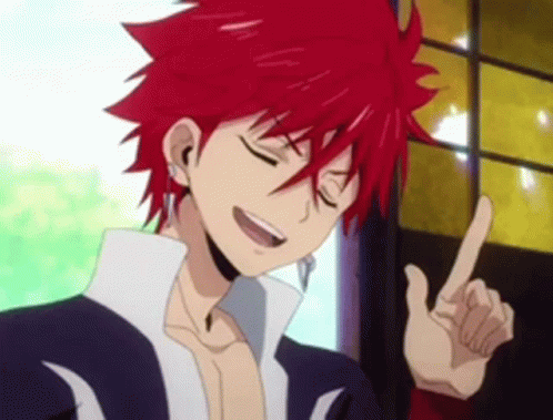 Контентын тайлбар: a man with red hair is smiling and pointing up with his finger .