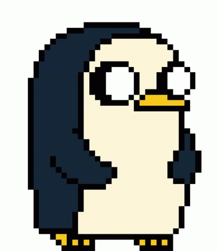 Контентын тайлбар: a pixel art drawing of a penguin with a black head and yellow beak