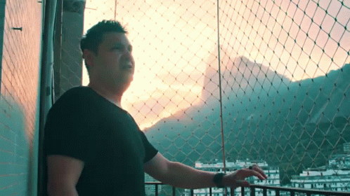 Контентын тайлбар: a man standing on a balcony looking out over a city