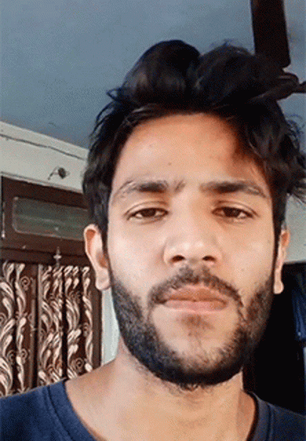 Контентын тайлбар: a man with a beard is wearing a blue shirt and looking at the camera
