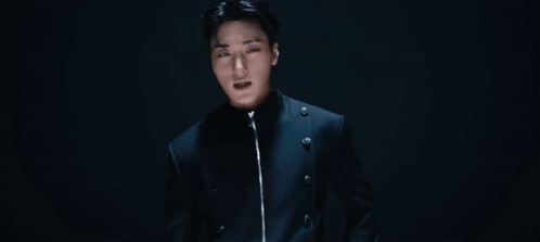 Контентын тайлбар: a young man in a black jacket is dancing in front of a blue wall .