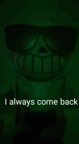 Контентын тайлбар: a picture of a skeleton wearing sunglasses with the words i always come back