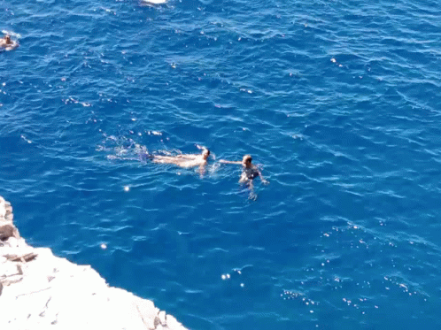 Контентын тайлбар: two people are swimming in a large body of blue water